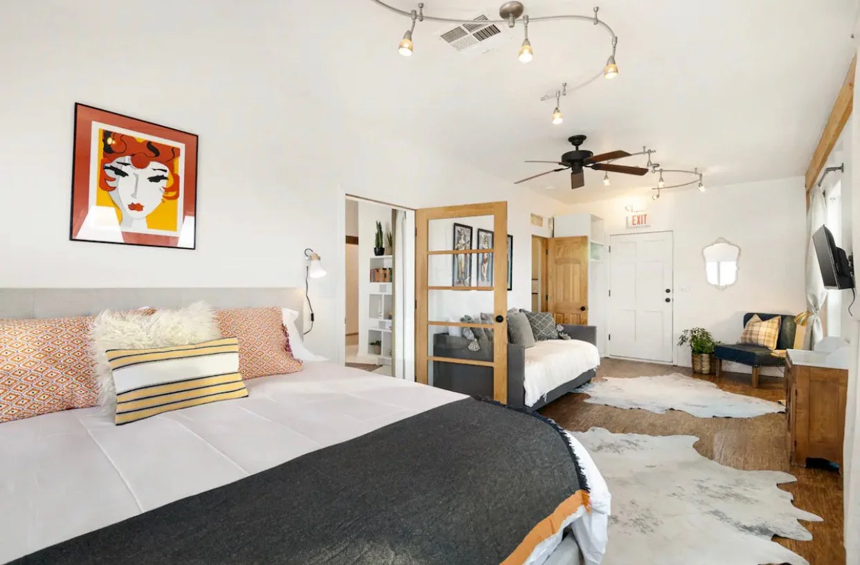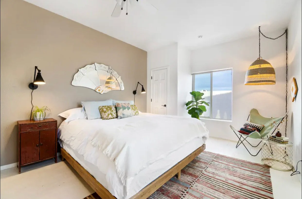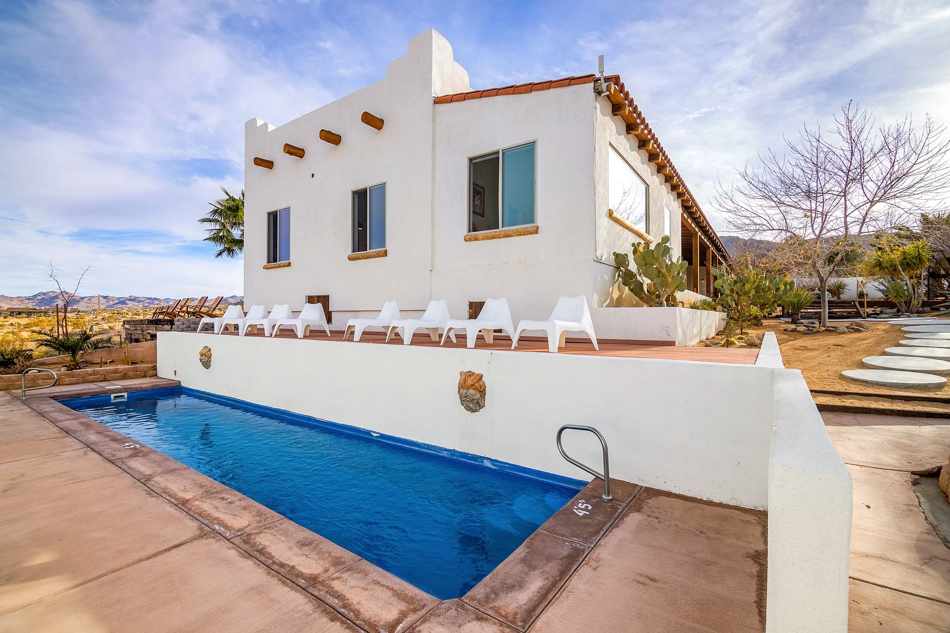 We will gather together at the house of the rising sun, a remarkable desert retreat on the sacred lands of Joshua Tree, CA. This property serves as an artist sanctuary, inviting visitors to embrace the desert's beauty and the boundless expanse of its stunning land and skies. Situated on a secluded 2.5 acres of land, the property features a heated saltwater pool, round fire pit and a rooftop observation deck.